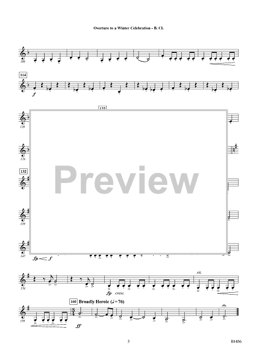 "Overture to a Winter Celebration - Bb Bass Clarinet" Sheet Music by Traditional