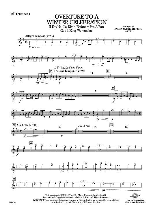 Digital Sheet Music for Overture to a Winter Celebration - Bb Trumpet 1 by Traditional, James M. Stephenson scored for Symphonic Band; id:415878