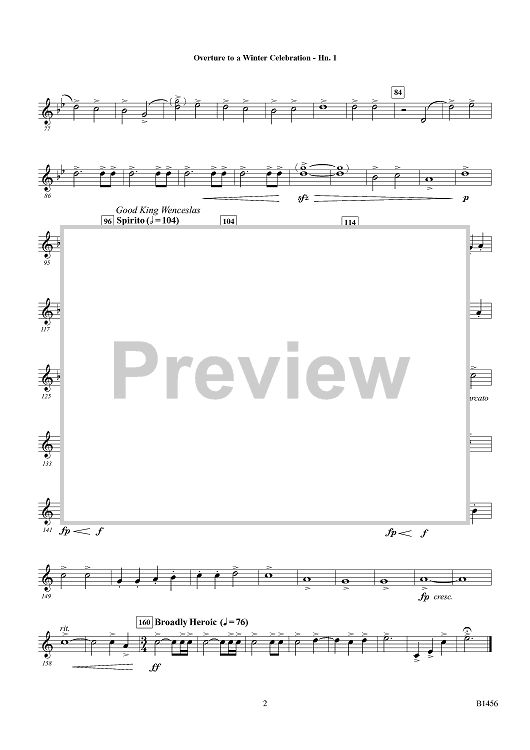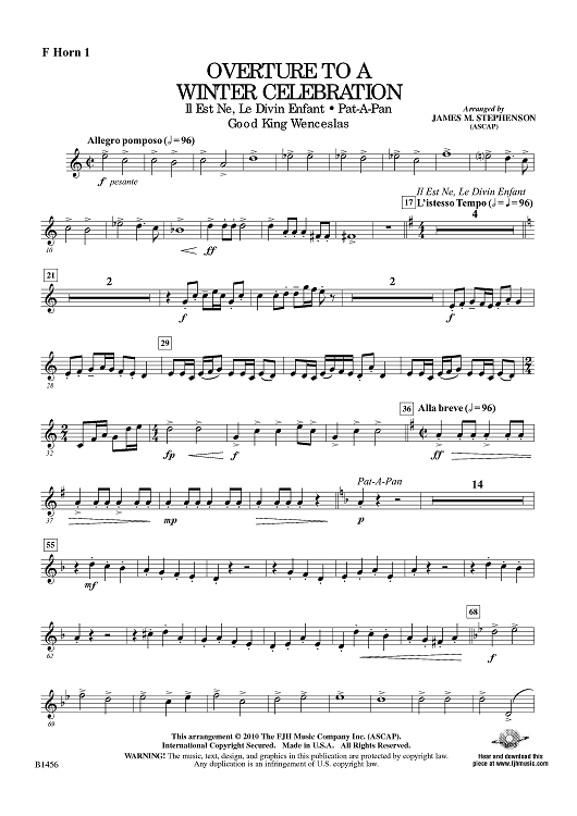 Digital Sheet Music for Overture to a Winter Celebration - F Horn 1 by Traditional, James M. Stephenson scored for Symphonic Band; id:415881