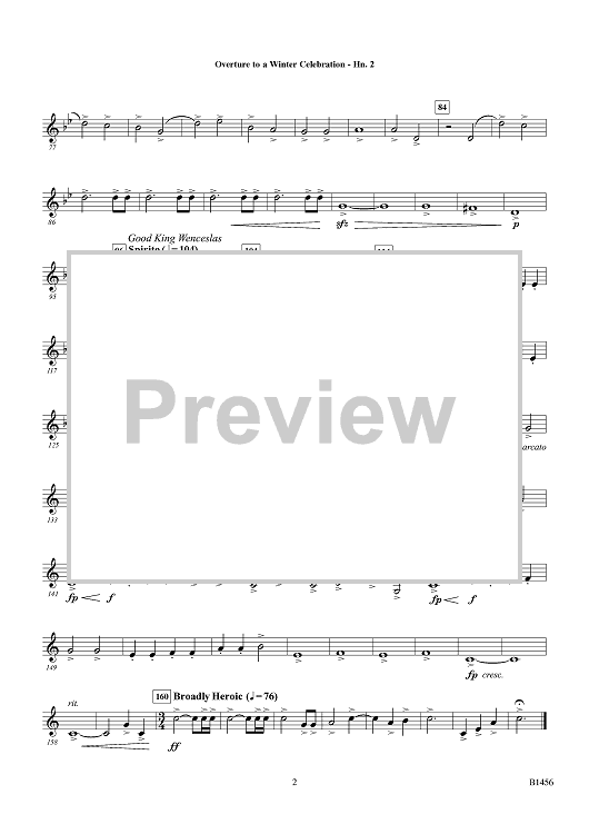 Digital Sheet Music for Overture to a Winter Celebration - F Horn 2 by Traditional, James M. Stephenson scored for Symphonic Band; id:415882