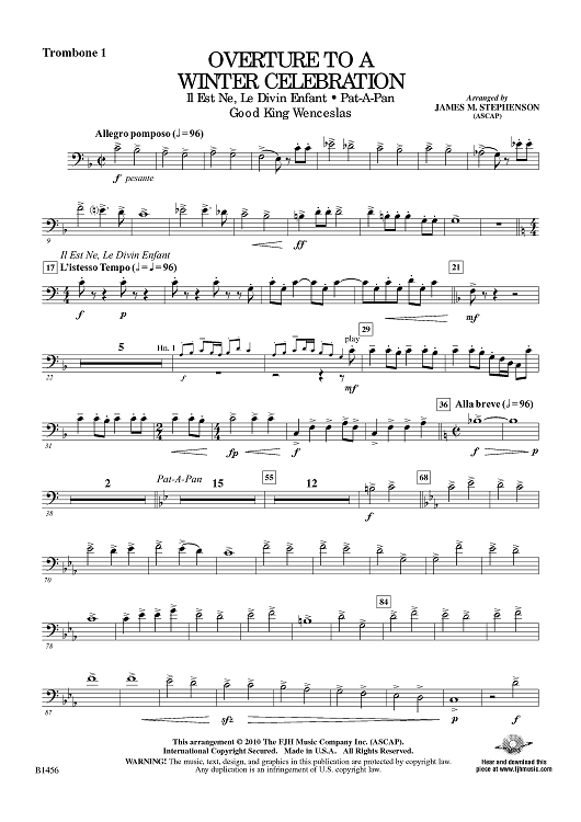 Digital Sheet Music for Overture to a Winter Celebration - Trombone 1 by Traditional, James M. Stephenson scored for Symphonic Band; id:415885