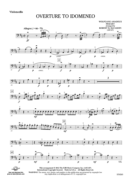 Digital Sheet Music for Overture to Idomeneo - Violoncello by Wolfgang Amadeus Mozart, Robert D. McCashin scored for String Orchestra; id:431937
