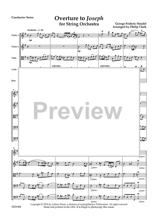 Digital Sheet Music for Overture to Joseph - Score by George Frideric Handel, Philip Clark scored for String Orchestra; id:458118