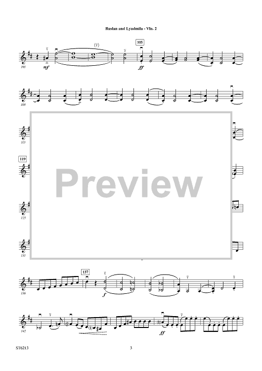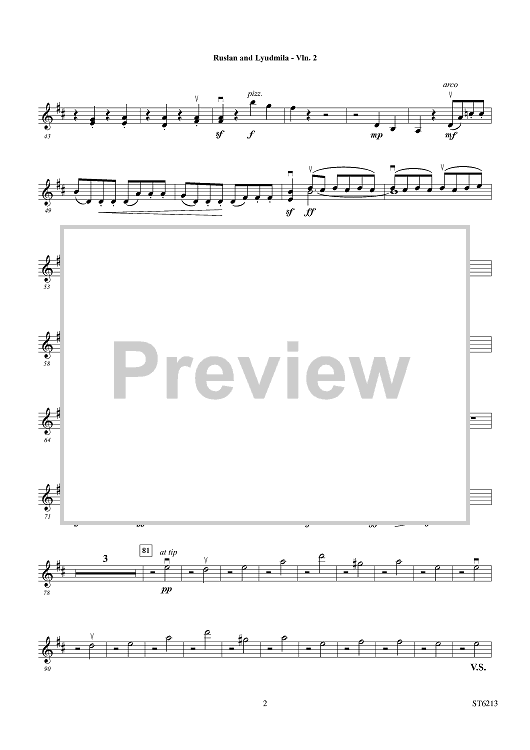 Digital Sheet Music for Overture to Ruslan and Lyudmila - Violin 2 by Mikhail Glinka, Robert D. McCashin scored for Orchestra; id:411577