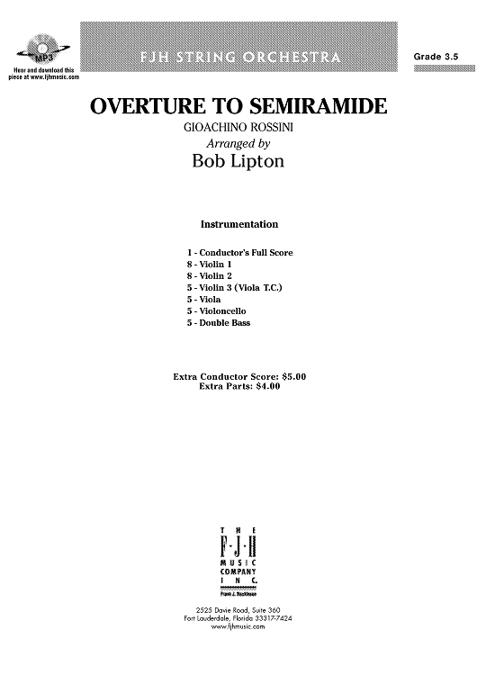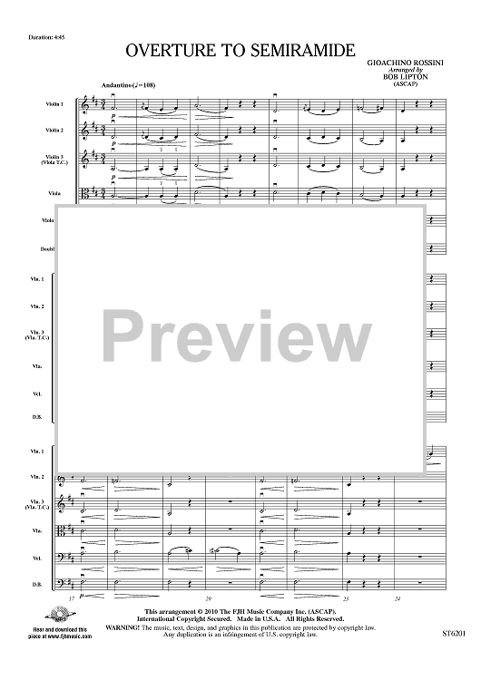 Digital Sheet Music for Overture to Semiramide - Score by Gioachino Rossini, Bob Lipton scored for Orchestra; id:411478