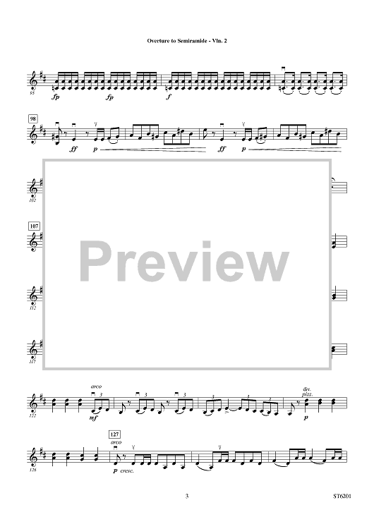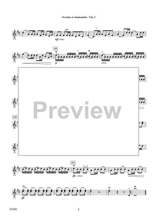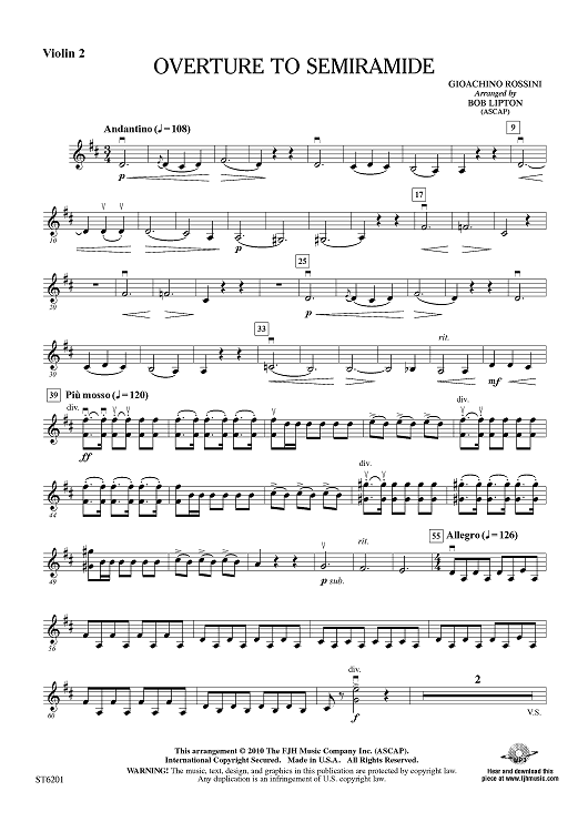Digital Sheet Music for Overture to Semiramide - Violin 2 by Gioachino Rossini, Bob Lipton scored for Orchestra; id:411480
