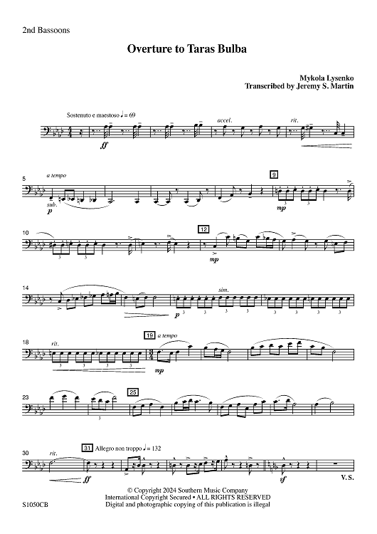 Digital Sheet Music for Overture to Taras Bulba - Bassoon 2 by Jeremy S. Martin, Mykola Lysenko scored for Concert Band; id:504332