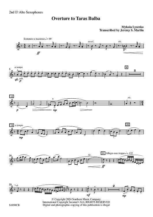Digital Sheet Music for Overture to Taras Bulba - Eb Alto Sax 2 by Jeremy S. Martin, Mykola Lysenko scored for Concert Band; id:504340