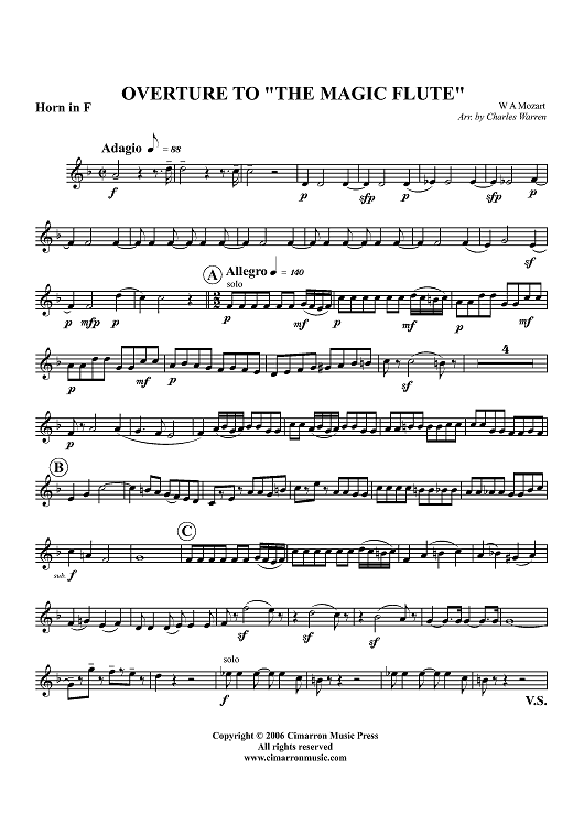 Digital Sheet Music for Overture to "The Magic Flute" - Horn in F by Wolfgang Amadeus Mozart, Charles Warren scored for Brass Quintet; id:355222
