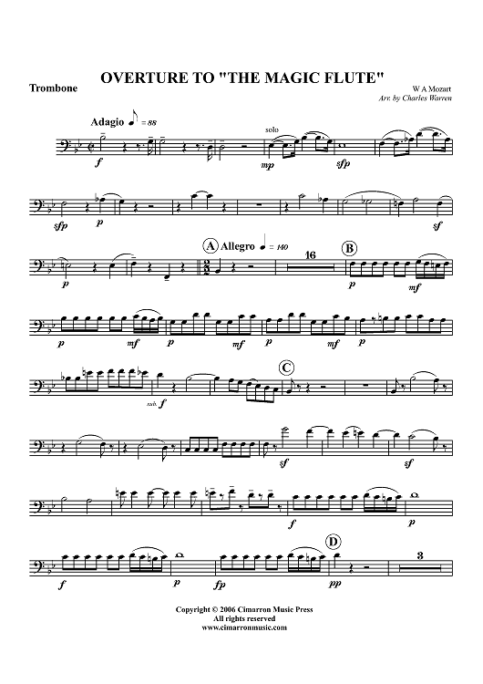 "Overture to "The Magic Flute" - Trombone" Sheet Music by Wolfgang Amadeus Mozart
