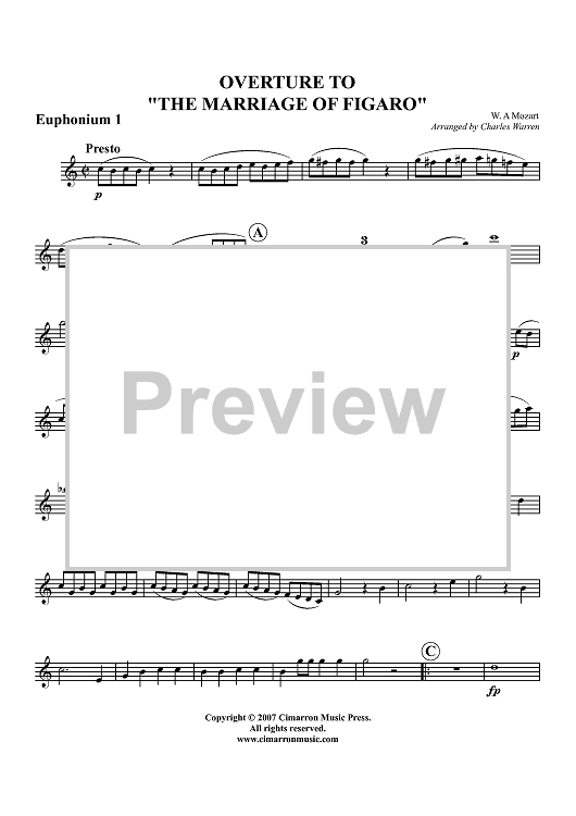 Digital Sheet Music for Overture to "The Marriage of Figaro" - Euphonium 1 BC/TC by Wolfgang Amadeus Mozart, Charles Warren scored for Tuba Ensemble; id:361096