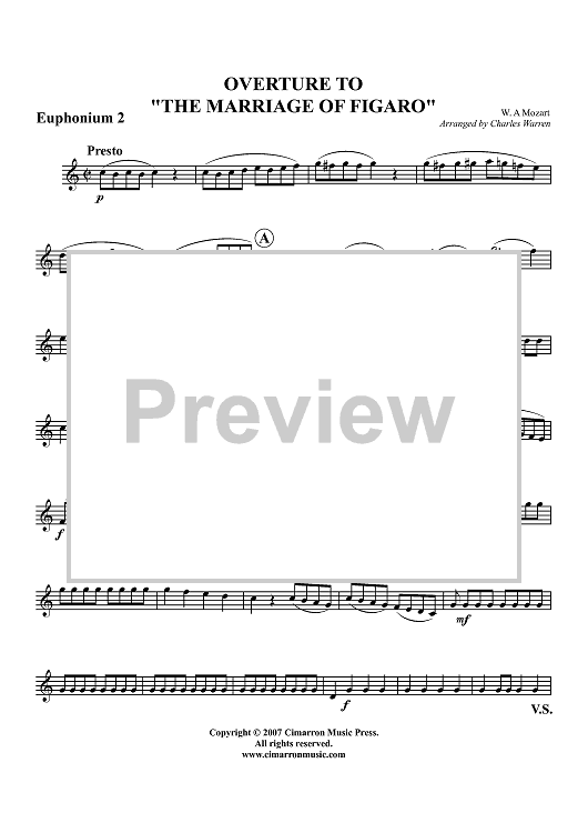 Digital Sheet Music for Overture to "The Marriage of Figaro" - Euphonium 2 BC/TC by Wolfgang Amadeus Mozart, Charles Warren scored for Tuba Ensemble; id:361097