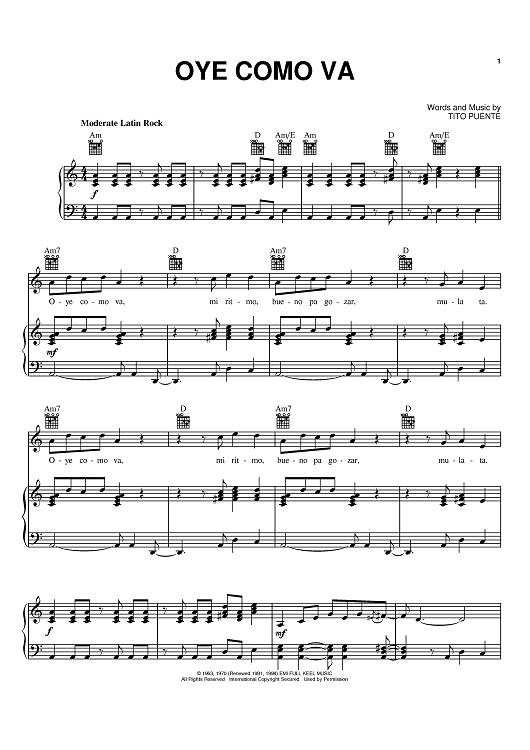 Digital Sheet Music for Oye Como Va by Tito Puente, Santana scored for Piano/Vocal/Chords; id:368558