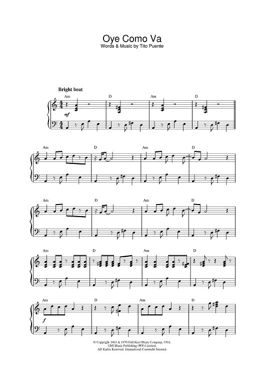 Digital Sheet Music for Oye Como Va by Tito Puente, Santana scored for Piano; id:377048