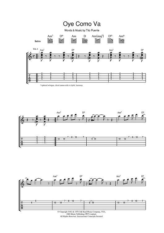 Digital Sheet Music for Oye Como Va by Tito Puente, Santana scored for Guitar Tab; id:398746