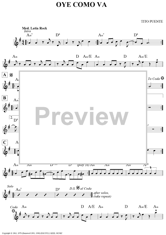 Digital Sheet Music for Oye Como Va by Tito Puente scored for Lead Sheet; id:456453