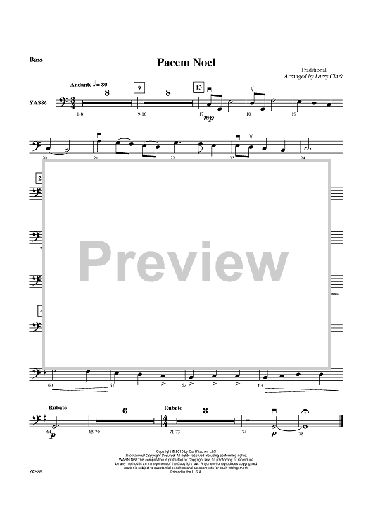 Digital Sheet Music for Pacem Noel - Bass by Larry Clark scored for Orchestra; id:411115