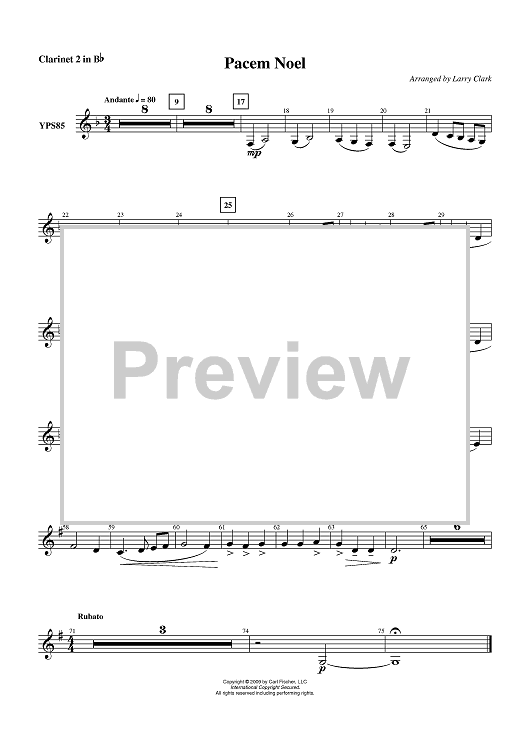 "Pacem Noel - Clarinet 2 in B-flat" Sheet Music by Larry Clark
