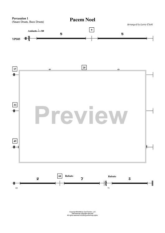 "Pacem Noel - Percussion 1" Sheet Music by Larry Clark