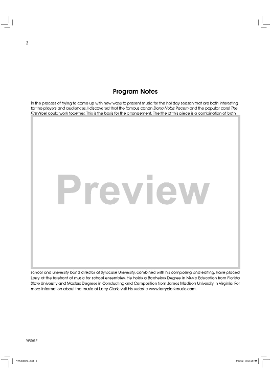 "Pacem Noel - Score" Sheet Music by Larry Clark