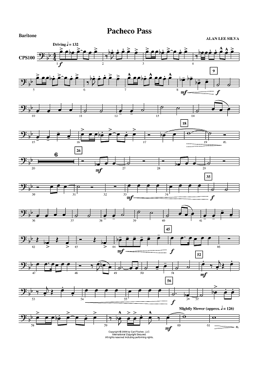Digital Sheet Music for Pacheco Pass - Baritone (Bass Clef) by Alan Lee Silva scored for Concert Band; id:405979