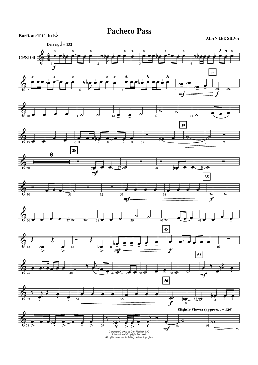 Digital Sheet Music for Pacheco Pass - Baritone (Treble Clef) by Alan Lee Silva scored for Concert Band; id:405978