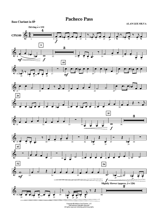Digital Sheet Music for Pacheco Pass - Bass Clarinet by Alan Lee Silva scored for Concert Band; id:405965