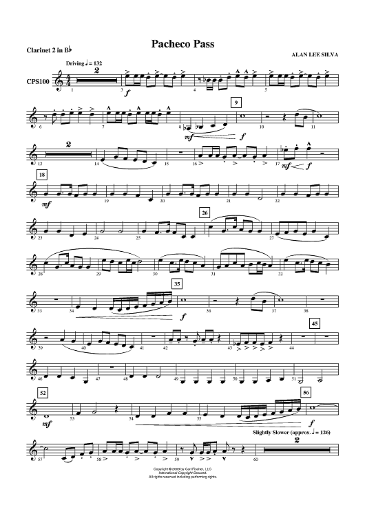 Digital Sheet Music for Pacheco Pass - Clarinet 2 in B-flat by Alan Lee Silva scored for Concert Band; id:405963