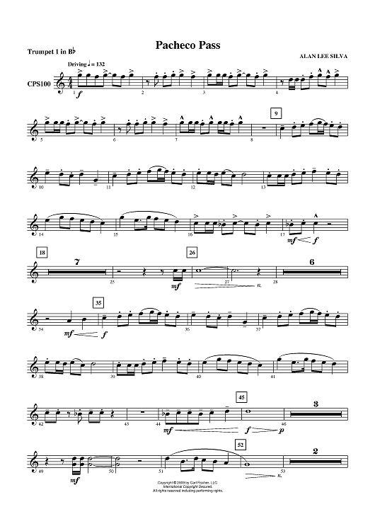Digital Sheet Music for Pacheco Pass - Trumpet 1 in B-flat by Alan Lee Silva scored for Concert Band; id:405971