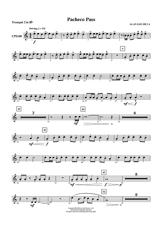 Digital Sheet Music for Pacheco Pass - Trumpet 2 in B-flat by Alan Lee Silva scored for Concert Band; id:405972