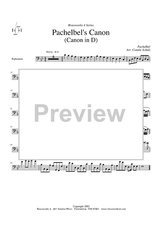 Digital Sheet Music for Pachelbel's Canon - Euphonium by Johann Pachelbel, Connie Schulz scored for Brass Quartet; id:316770