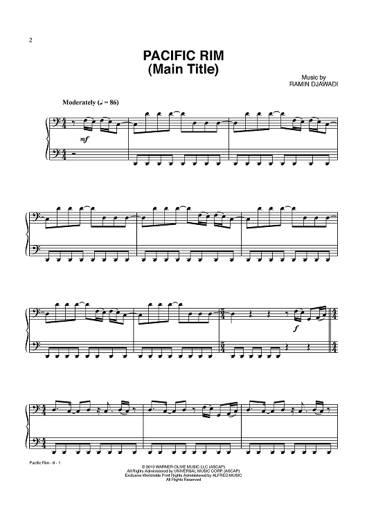 "Pacific Rim (Main Title)" Sheet Music by Ramin Djawadi