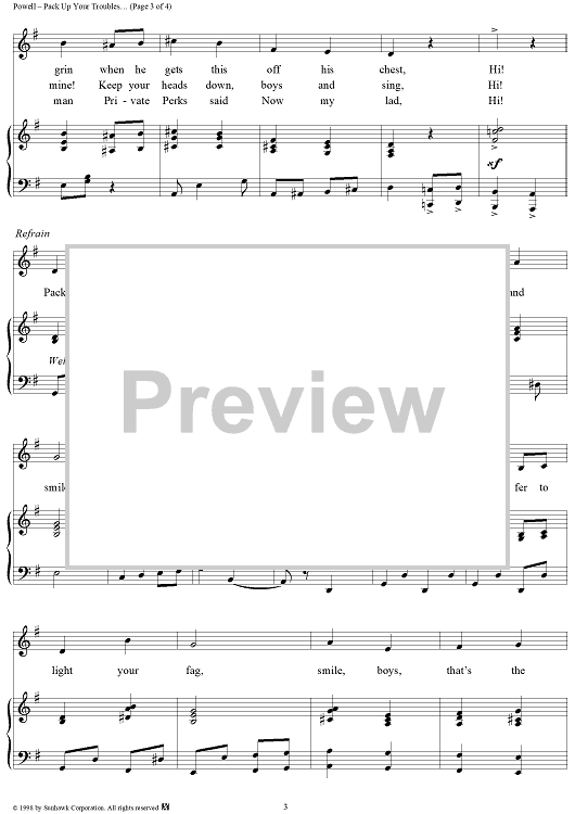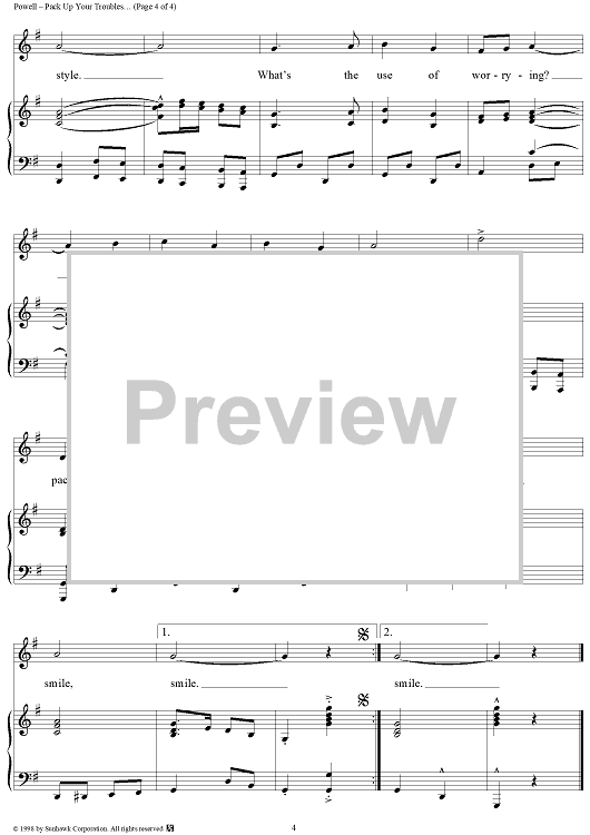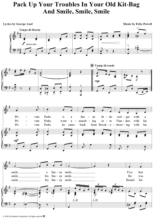 Digital Sheet Music for Pack Up Your Troubles In Your Old Kit-Bag and Smile, Smile, Smile by Felix Powell, George Asaf scored for Piano/Vocal; id:95850