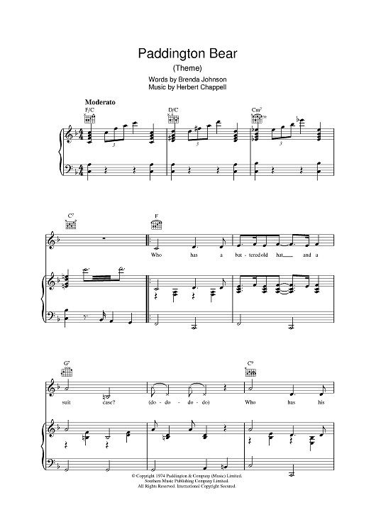 Digital Sheet Music for Paddington Bear by Brenda Johnson, Herbert Chappell, Bernard Cribbins scored for Piano/Vocal/Chords; id:401398