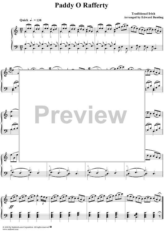 Digital Sheet Music for Paddy O'Rafferty by , Edward Bunting, Traditional scored for Piano Solo; id:240567