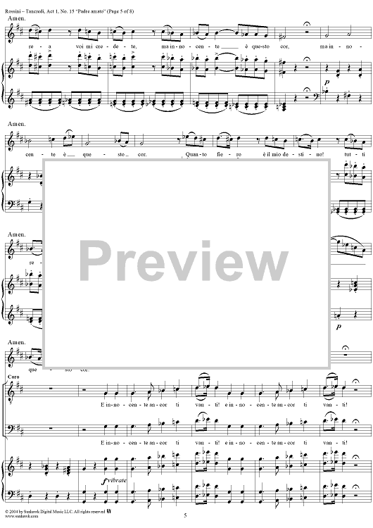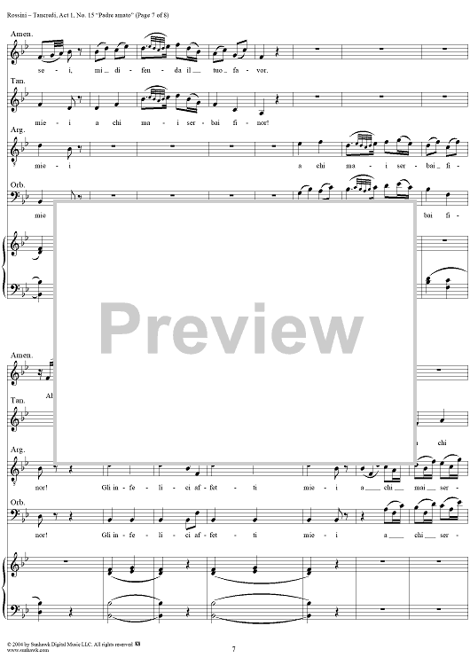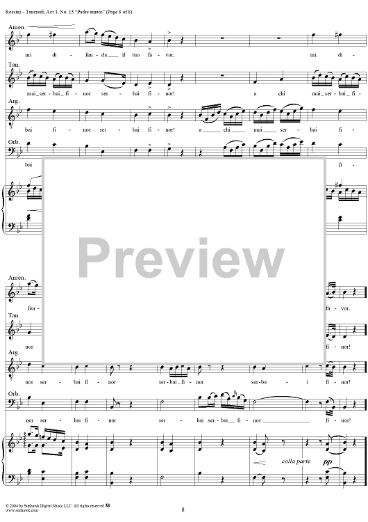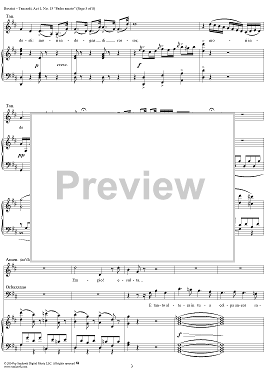 Digital Sheet Music for Padre amato: No. 15 from "Tancredi", Act 1, Scene 13 - Score by Gioachino Rossini scored for Voice/Piano; id:302878