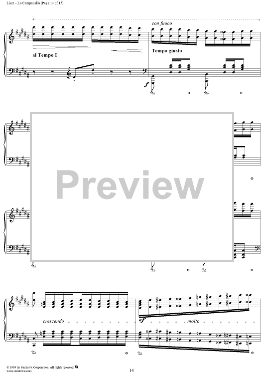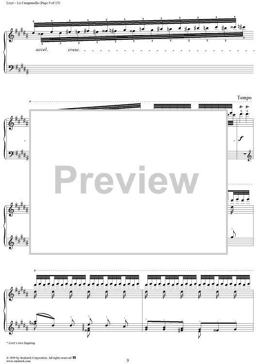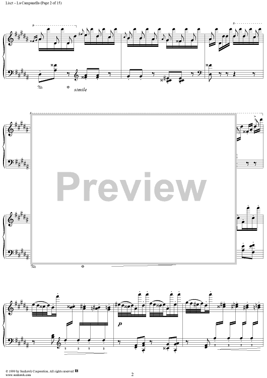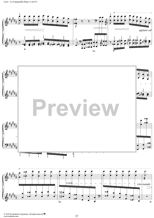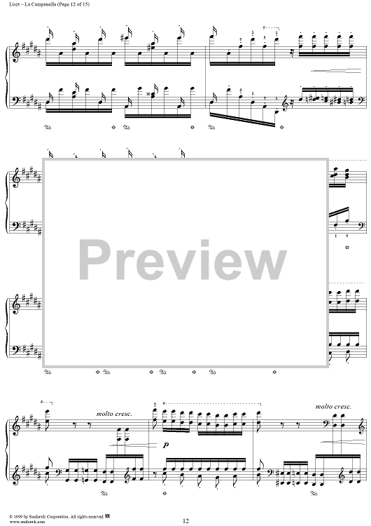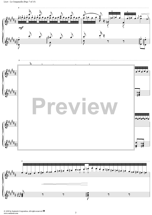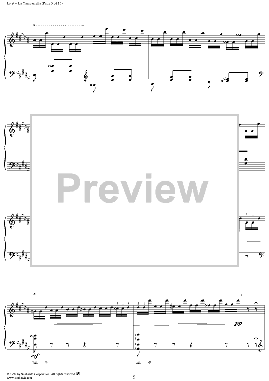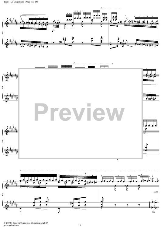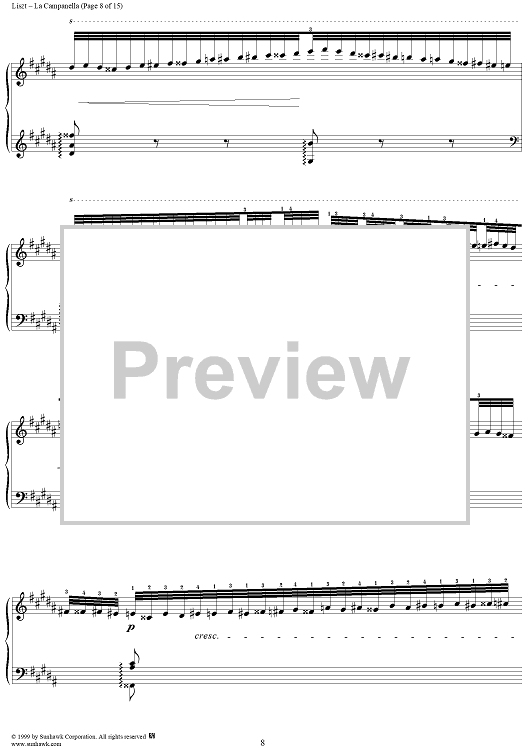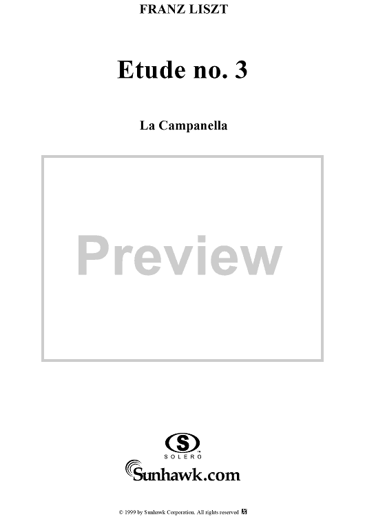 Digital Sheet Music for Paganini Etudes, No. 3: La Campanella by Franz Liszt scored for Piano Solo; id:250661