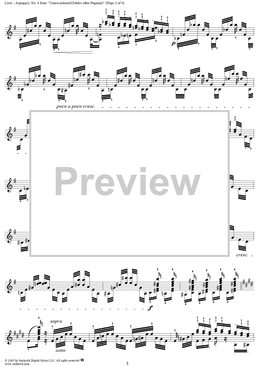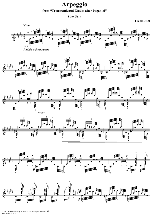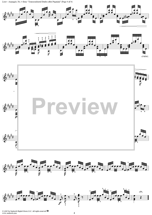 Digital Sheet Music for Paganini Etudes, No. 4: Arpeggio Study in E Major by Franz Liszt scored for Piano Solo; id:310604
