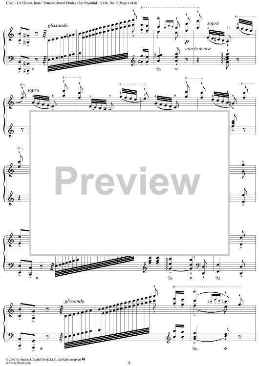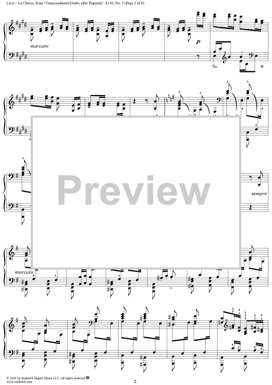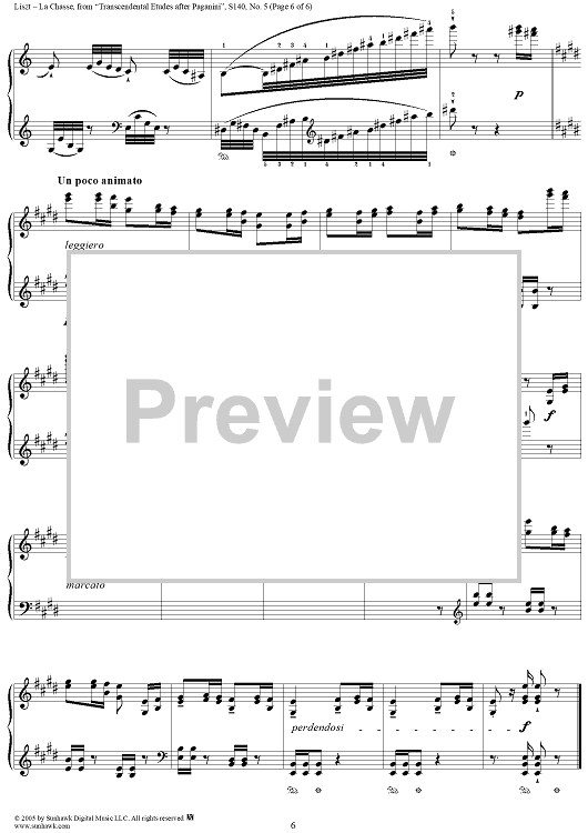 Digital Sheet Music for Paganini Etudes, No. 5: La Chase by Franz Liszt scored for Piano Solo; id:310605