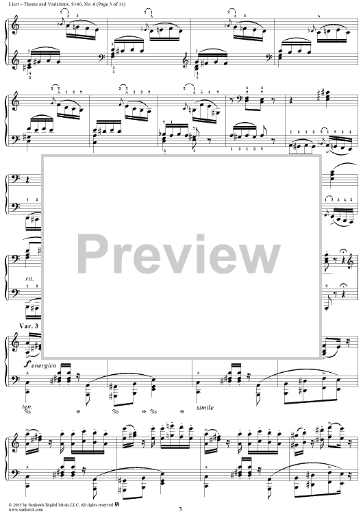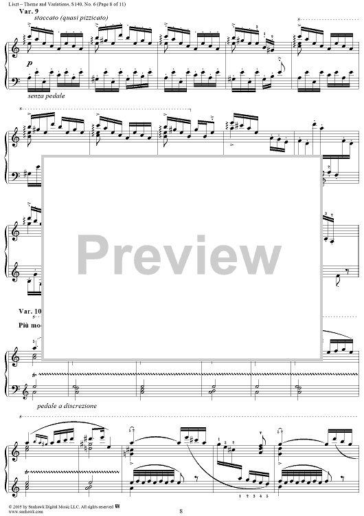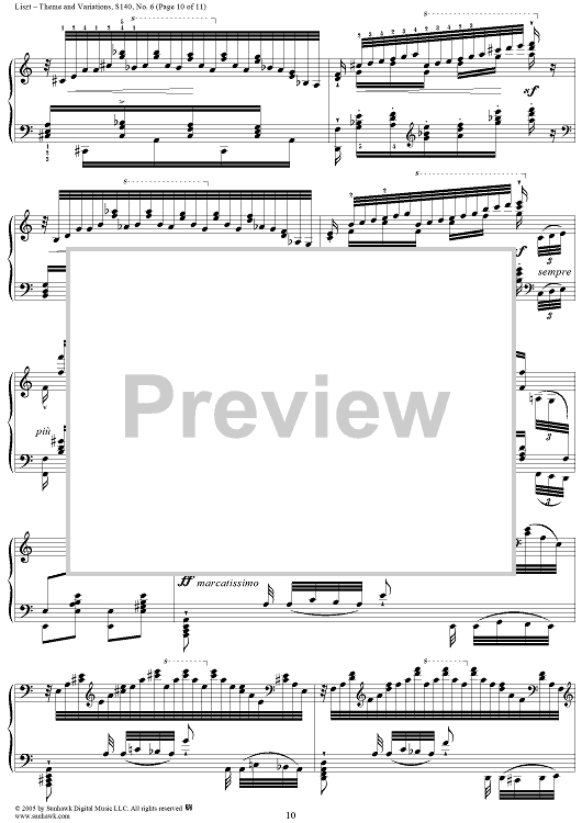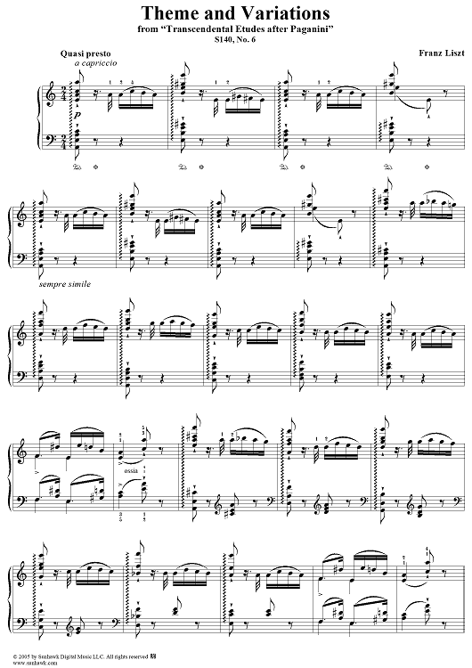 Digital Sheet Music for Paganini Etudes, No. 6: Theme and Variations in A Minor by Franz Liszt scored for Piano Solo; id:310606