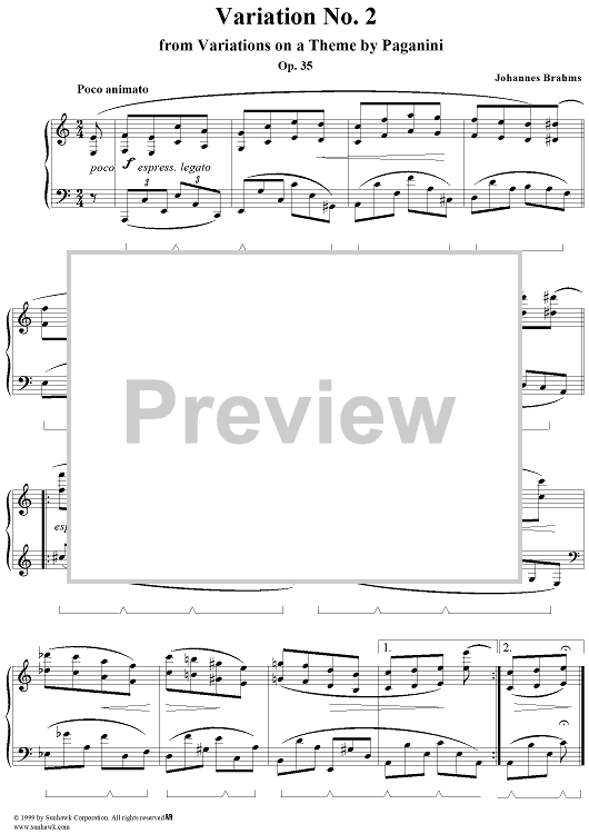 Digital Sheet Music for Paganini Variations, No. 2 by , Johannes Brahms scored for Piano Solo; id:118447