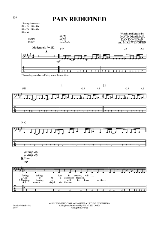 Digital Sheet Music for Pain Redefined by Disturbed, Mike Wengren, Dan Donegan, David Draiman scored for Bass Tab; id:357786