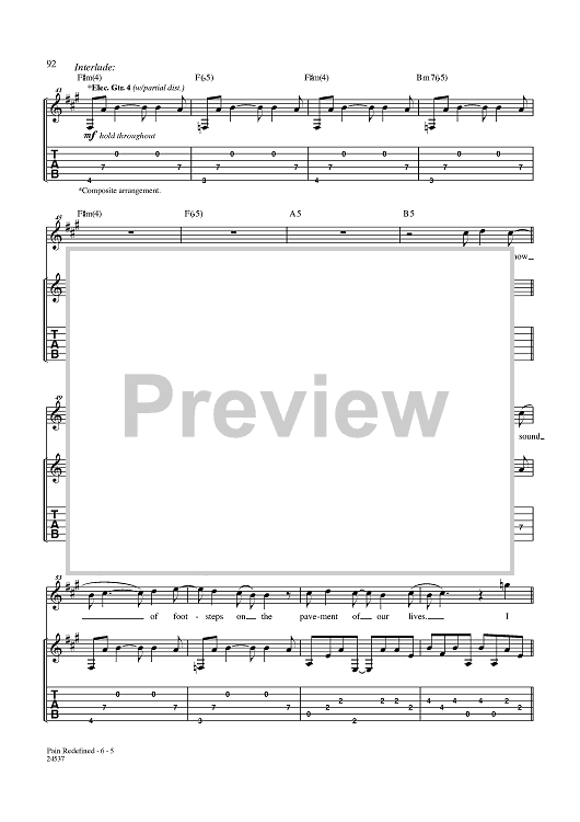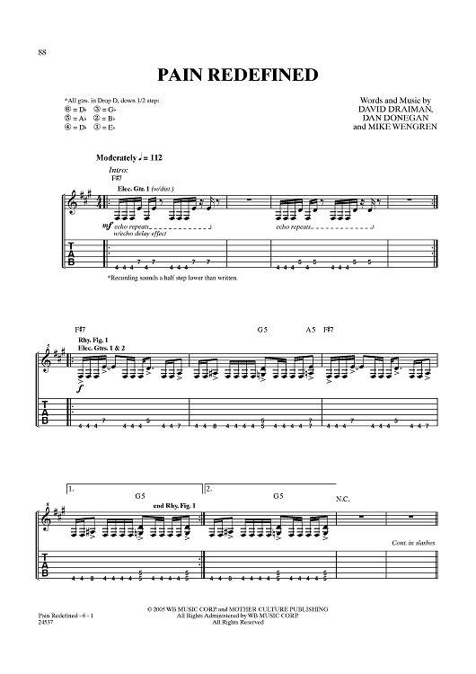 Digital Sheet Music for Pain Redefined by Disturbed, Mike Wengren, Dan Donegan, David Draiman scored for Guitar Tab/Vocal; id:357800
