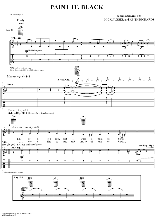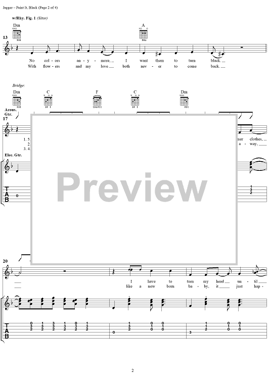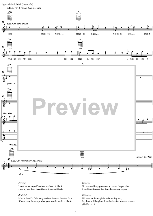 "Paint It, Black" Sheet Music by The Rolling Stones