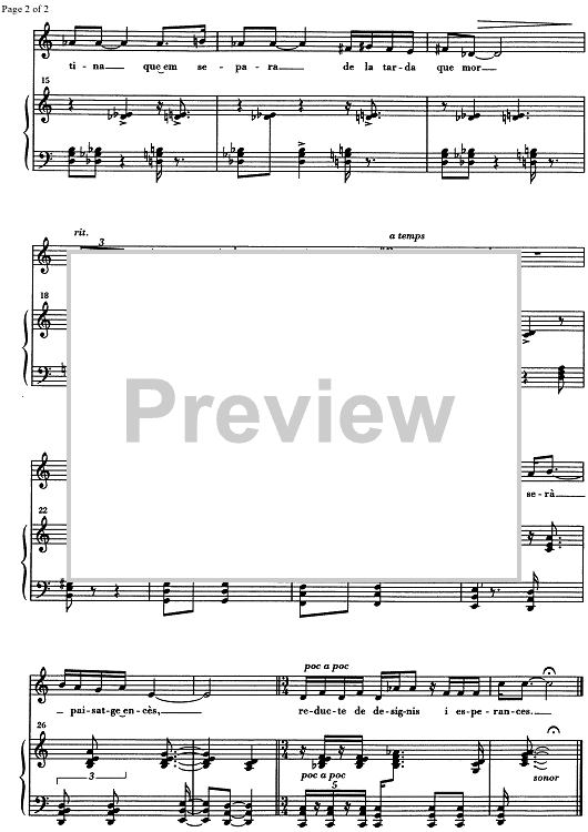 Digital Sheet Music for Paisatge ences - Score by , Mercè Torrents scored for Mezzo-soprano or Baritone/Piano; id:349092