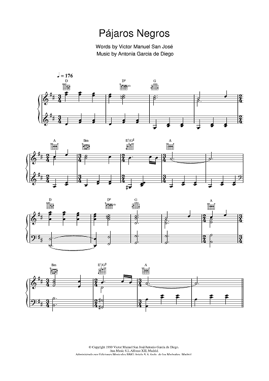 Digital Sheet Music for Pájaros Negros by Antonia Garcia de Diego, VictorTierra Mia Manuel San Jose scored for Piano/Vocal/Chords; id:379964
