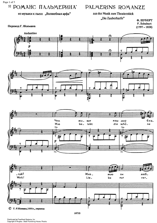 Digital Sheet Music for Palmerins Romanze from Die Zauberharfe D644 by , Franz Schubert scored for Soprano/Piano; id:337176