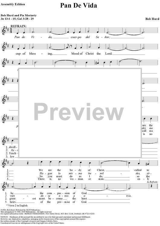 "Pan de Vida (Assembly Edition - English)" Sheet Music by Bob Hurd