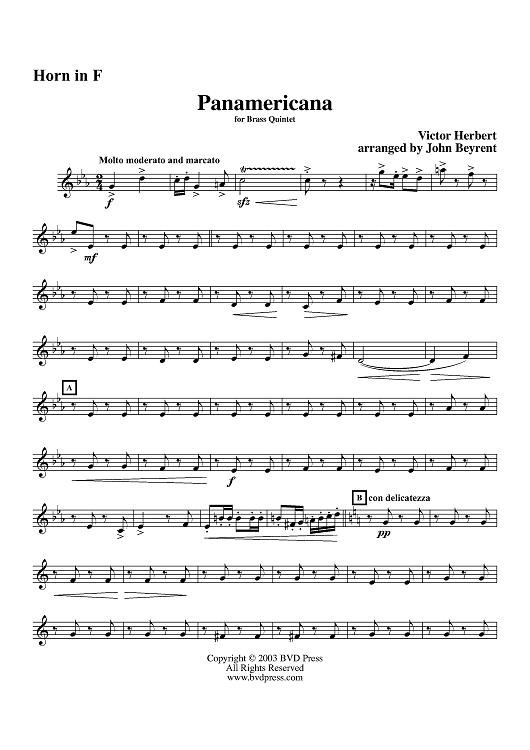 Digital Sheet Music for Panamericana - Horn by John Beyrent, Victor Herbert scored for Brass Quintet; id:312271