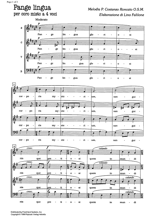 Digital Sheet Music for Pange Lingua by , Lino Falilone, Costanzo Roncato scored for SATB Choir; id:331903